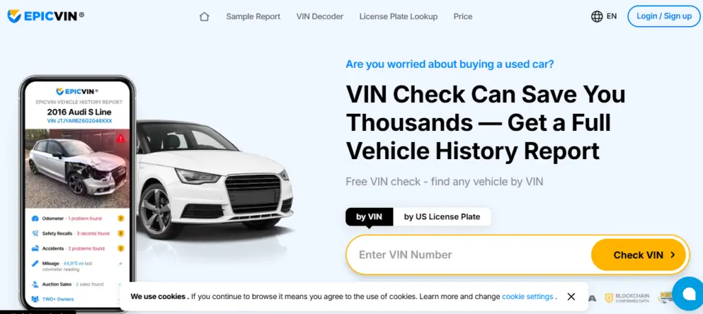 Buyers who are intimidated by complex reports will find it particularly helpful since it pulls data from NMVTIS and other reliable sources. Although it’s not the most affordable choice, EpicVIN’s presentation clarity justifies its position.